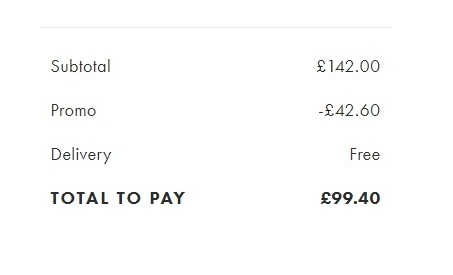 코드를 입력하기 전에는 장바구니 합계(Subtotal)만 표시되고 할인 항목은 별도로 나타나지 않습니다. 적용 후에는 결제 요약 화면에 “Promo” 항목이 추가로 생성되며, 할인 금액이 차감된 것을 확인할 수 있습니다. 최종 결제 금액(TOTAL TO PAY)은 이 차감 금액이 반영된 상태로 다시 계산됩니다.