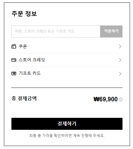 최종 할인 적용 여부는 항상 결제 직전 화면에 표시되는 금액을 기준으로 확정되며, 이 화면에 나타난 총 결제 금액이 실제 결제 금액으로 처리됩니다.